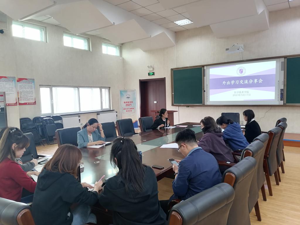 “采他山之石以攻玉,纳百家之长以厚己。”为更好地发挥教师外出培训的实效性和辐射引领作用,实现“一人学习、众人受益、共同成长”的培训效果,促进学院教师专业化成长,5月17日下午,医学技术学院在善学楼五楼会议室召开外出学习交流分享会,医学技术学院全体专兼职教师参会,会议由医学技术学院副院长王丹主持。