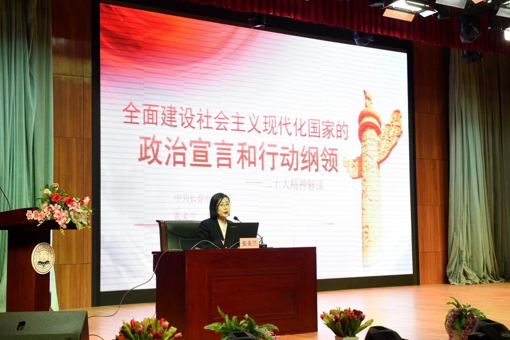 张美兰一个半小时的精彩讲解,从如何学习党的二大报告开篇,围绕新时代十年成就推动我国迈上新征程、开辟马克思主义中国化时代化新境界、以中国式现代化全面推进中华民族伟大复兴、全面从严治党深入推进新时代党的建设新的伟大工程四个方面进行了解读。张教授的讲座既有理论讲解,又有详实例证,深入浅出地指导与会师生更加准确把握二十大精神内涵和核心要义,领会丰富内涵,教育引导广大师生把思想和行动统一到党的二十大精神上来。