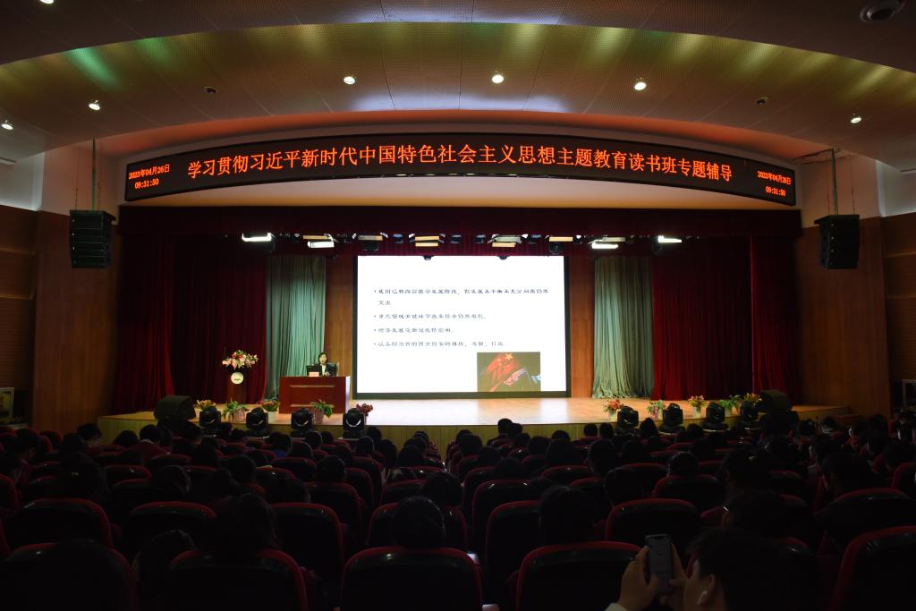 4月26日上午9时 ,学校举办学习贯彻习近平新时代中国特色社会主义思想主题教育读书班暨上专题党课。学校邀请市委党校张美兰副教授作《全面建设社会主义现代化国家的政治宣言和行动纲领——党的二十大精神解读》的专题党课。组织部部长刘洪波主持会议。