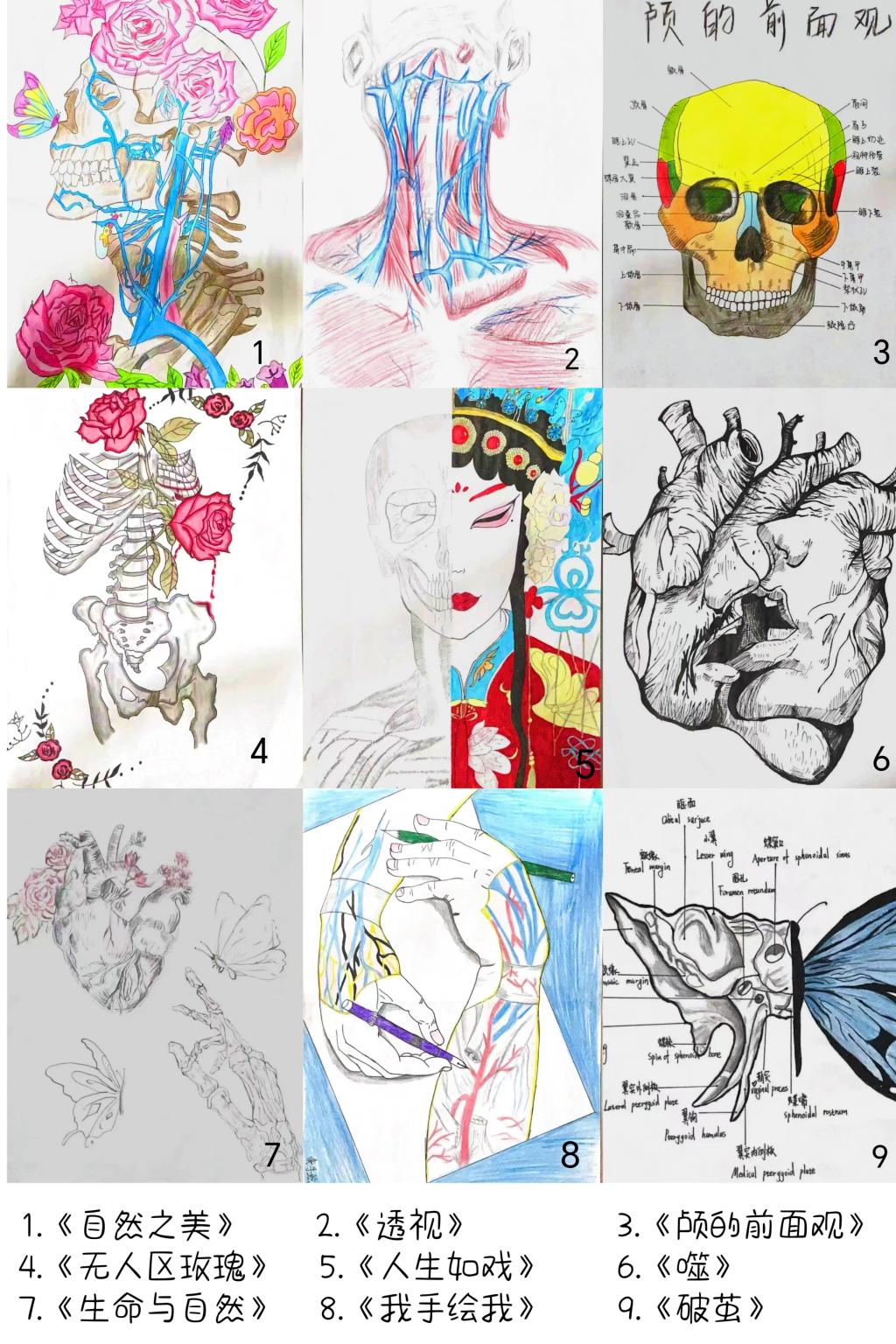 活动面向全院学生开展,共收集参赛作品137份,作品以素描、彩铅画、水彩画为主,作品内容包罗人体骨骼、血管、肌肉、脏器等多个专业知识点。同学们以艺术形式展现了专业精神,将专业与美术相融合,传统与创意相碰撞。在学生神奇的笔下,抽象的医学概念插上了艺术的翅膀,人体的组织器官变成了美轮美奂的艺术品,借创意将医学的感性美展现得淋漓尽致,极具视觉震撼力。经过多轮的评比和网络投票,最终评选出一等奖1名,二等奖3名,三等奖5名。