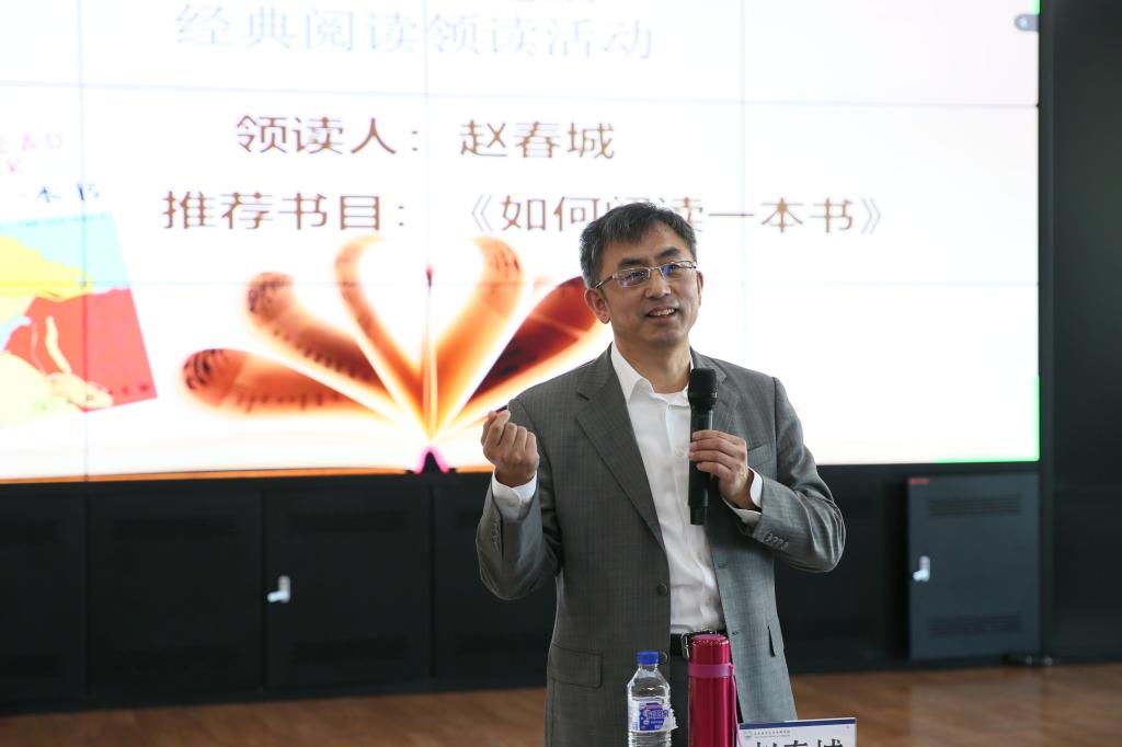 仪式结束后,作为“医专讲•述堂”经典阅读第一期领读人,纪委书记赵春城向全校师生推荐了《如何阅读一本书》,领读以线上直播和线下面对面交流方式开展。赵春城从作者写作背景、主要内容和此书作为工具书的功能徐徐讲来,同时分享自己求学和工作的成长经历,参会的学生都被他在困境中努力读书、崇尚学习、持之以恒的精神所打动。在随后的交流互动时间里,赵春城耐心解答了学生提出的关于读书困惑和学习方法等问题。