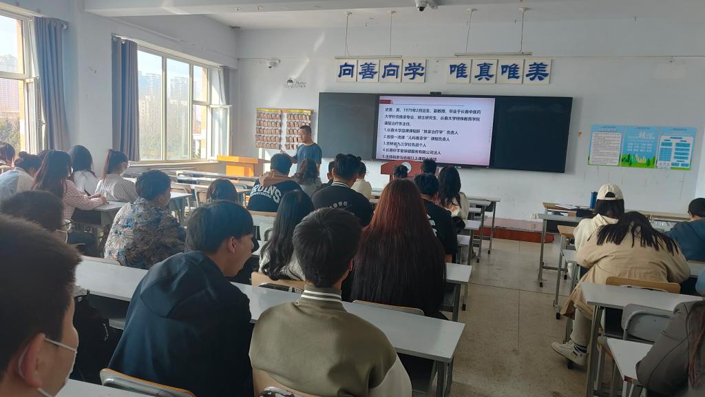 丛嘉鑫介绍了长春固本推拿艾灸堂的概况及行业发展需求情况,通过自身学习和工作经历,鼓励同学们学好专业知识,一定会在养生行业大有作为。