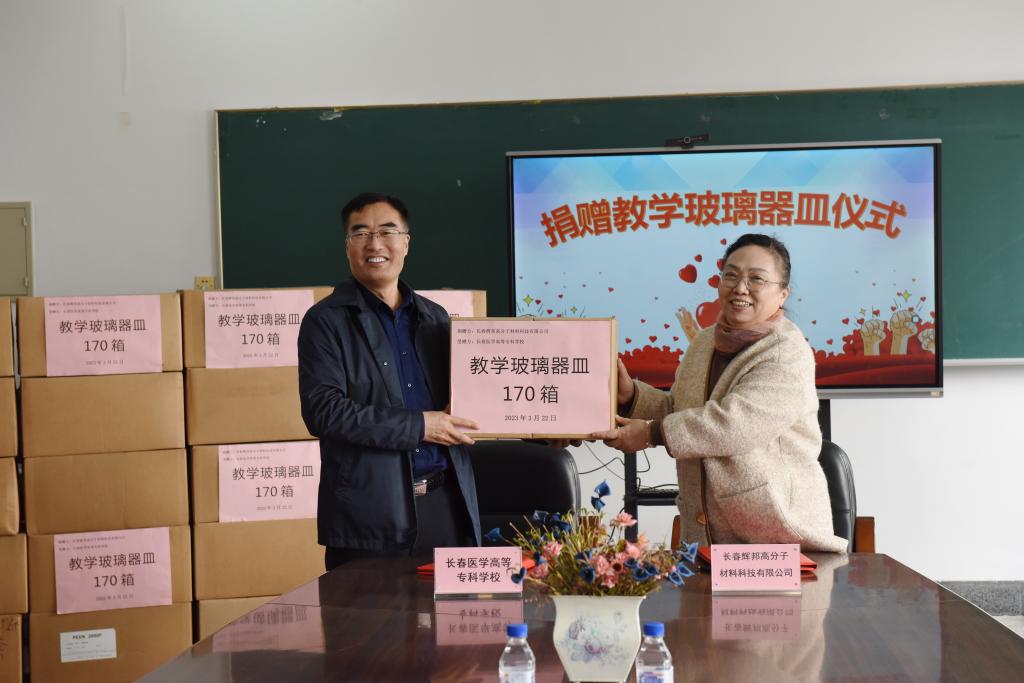 3月22日,我校退休教师、长春辉邦高分子材料科技有限公司公司代理董事长王瑛向药品食品学院捐赠教学器皿仪式在药学楼六楼会议室举行。学校校长袁兆新,药品食品学院教学副院长王月珍及学院全体教师出席捐赠仪式。药品食品学院院长于景龙主持仪式。