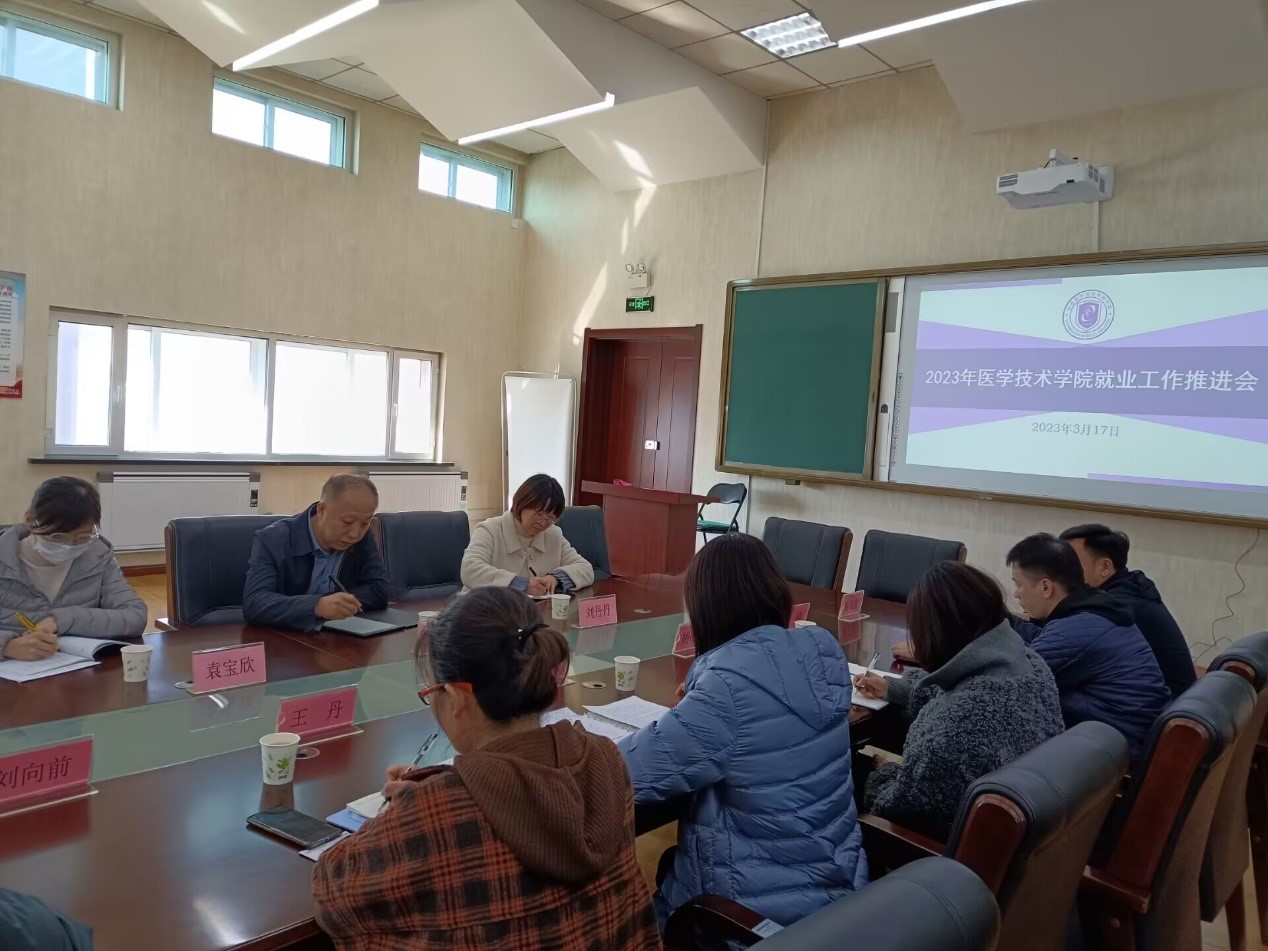 为深入学习贯彻党的二十大精神,落实教育部、吉林省及学校党委关于做好2023届毕业生就业工作的相关要求,努力实现毕业生更加充分和更高质量就业,3月17日下午,医学技术学院在善学楼5楼会议室召开2023届毕业生就业工作推进会,党委副书记高洪宇、招生就业处副处长刘丹丹、学院就业工作领导小组成员及毕业生辅导员参加会议。会议由医学技术学院副院长孙晓琪主持。