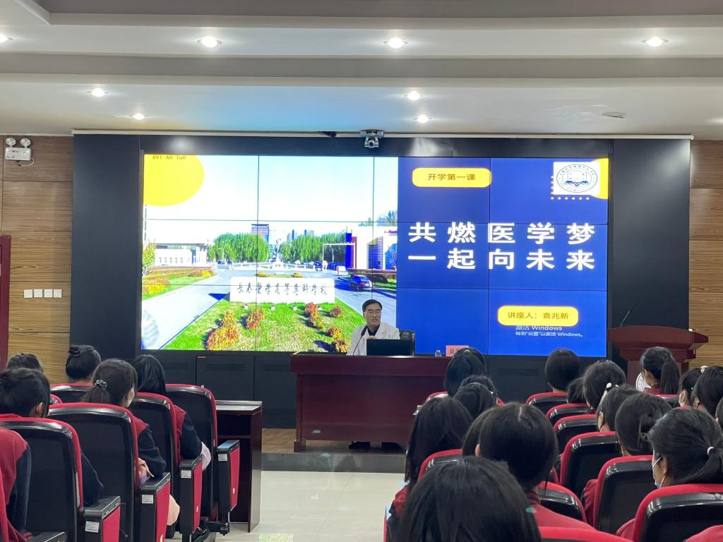 3月13日下午,校长袁兆新以“共燃医学梦 一起向未来”为题,在善教楼二楼报告厅为2021级护理学院的同学讲授“开学第一课”。