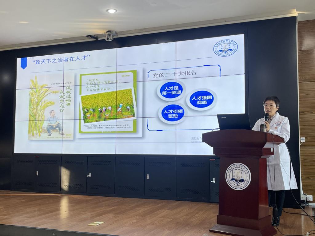 杜书记首先通过生动的事例向同学们展示了当前的人才培养时势——伟大事业呼唤人才,伟大时代造就人才,然后从三个层面展开深刻剖析:第一是洞悉大势,人才强国的战略考量。她带领同学们回顾世界强国发展史,突出强调了人才队伍及其创新对社会发展所起到的推动作用;第二是立足当下,职业人才的现实发展。结合吉林医药健康产业发展前景,立足我省基层医药卫生和健康养老产业高质量服务提升的现实需要,杜书记强调当前及今后一个时期对医药卫生技术人才需求空前旺盛;第三是回归自身,青春担当的奋斗底色。杜书记用生动鲜活的案例向同学们讲述只要积极参加社会实践,加强与社会的接触,只要放下心态,放低姿态,就能用青春和汗水创造出让人刮目相看的成绩。最后,她寄语每一位同学,既有小我姿态,更有家国情怀,坚定小我融入大我的家国情怀和报国志向,在实践中淬炼成长,为实现中华民族伟大复兴的中国梦不断奋斗。