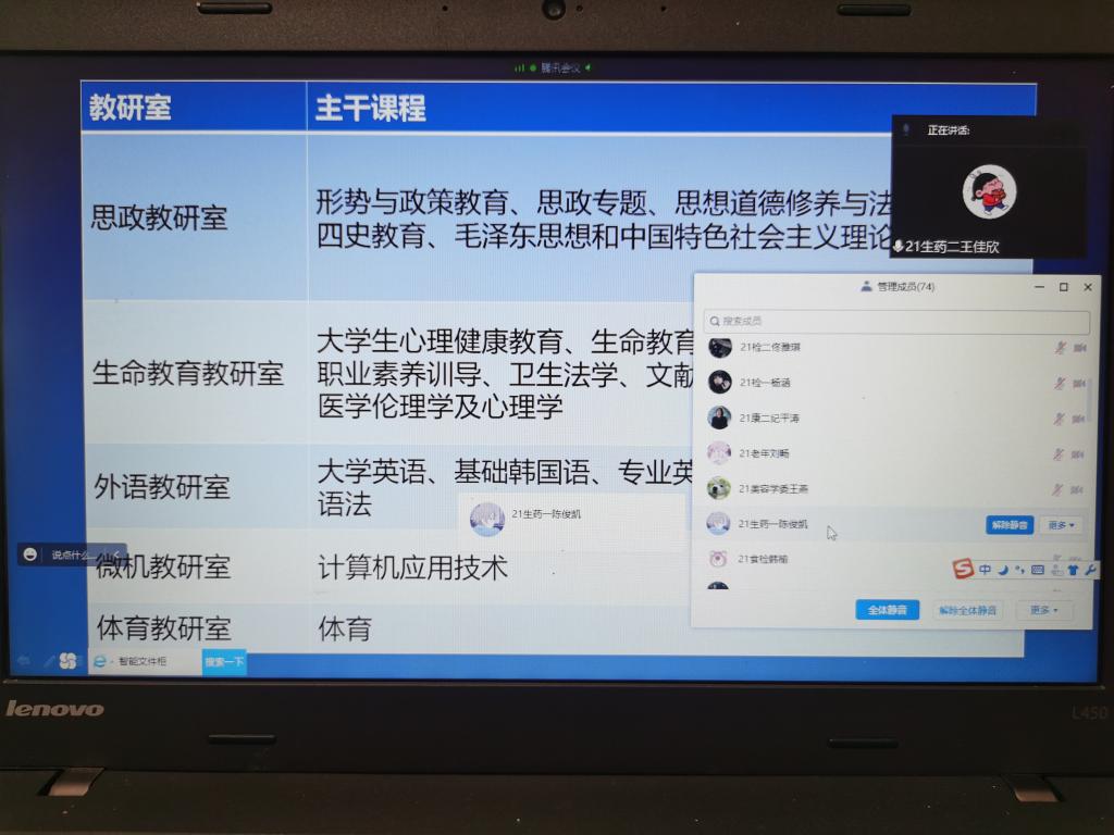 各班学委从线上线下的教学安排、教学效果、教学方法、教材使用、教学手段等方面进行反馈,提出了一些在学习中遇到的问题和困难。各教研室主任分别进行了解答。