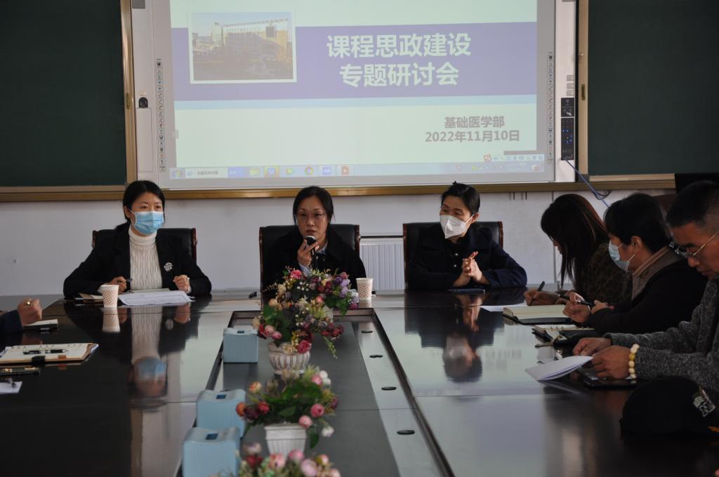为深入学习贯彻党的二十大精神,有效推进课程思政建设工作深入开展,提高学部整体课程育人工作水平,基础医学部于11月10日下午在基础楼四楼会议室以线上和线下相结合的方式召开了课程思政专题研讨会。思政部副主任王萍、基础医学部主任高寒、党总支书记李桂波及学部全体教师参加了本次会议,会议由基础医学部办公室主任宋佰慧主持。