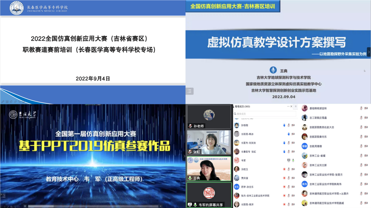 为进一步推动数字仿真技术应用,提升仿真技术创新应用意识,搭建仿真技术产学研融合的高质量平台,加强院校仿真技术应用型人才培养,工业和信息化部组织了2022年全国仿真创新应用大赛。为更好的帮助中高职院校教师深化对大赛内涵的理解、完善参赛作品,9月4日上午,我校在腾讯会议平台组织召开了2022年全国仿真创新应用大赛(吉林省赛区)职教赛道赛前培训会,学校副校长孙莹、教务处处长张虹以及中高职院校领导、老师共计320余人参加了会议,会议由学校教务处处长张虹主持。