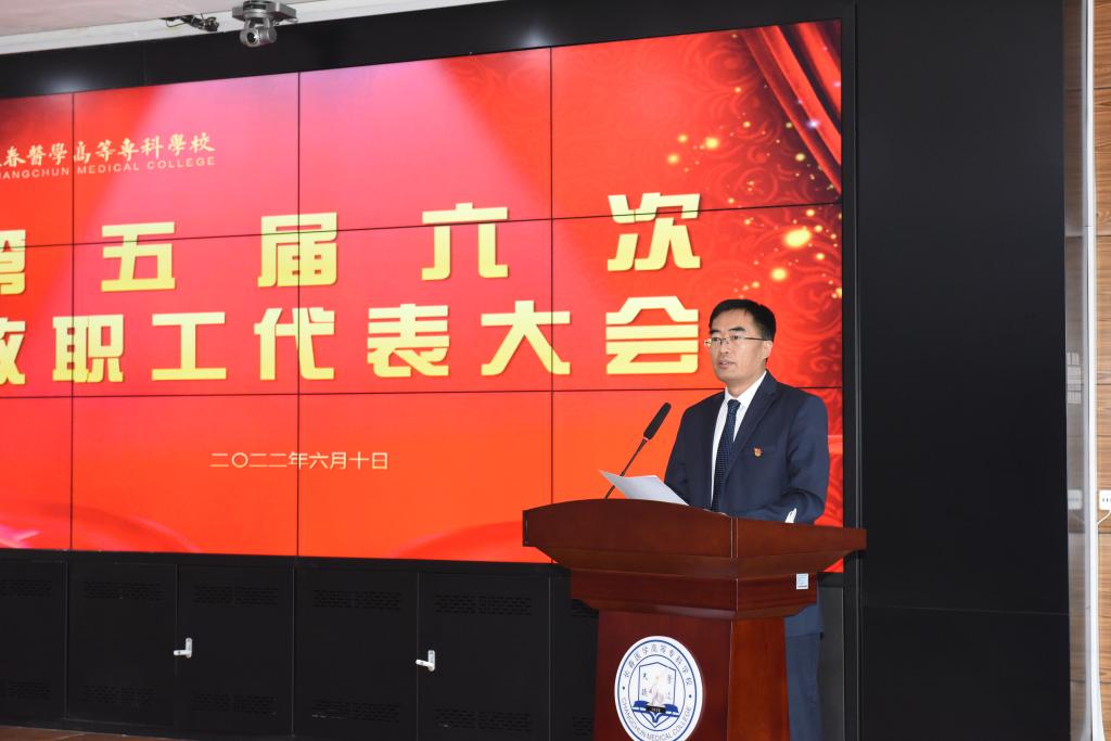 6月10日,长春医学高等专科学校在善教楼二楼报告厅召开第五届六次教职工代表大会,全体校领导和教职工代表、列席代表参会,工会主席张旭主持会议。