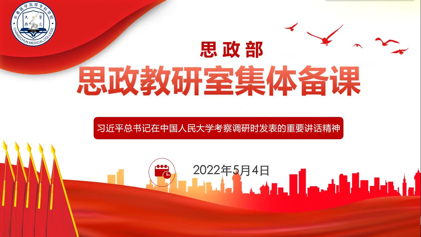 为深入贯彻4月25日习近平总书记在中国人民大学考察调研时发表的重要讲话精神,结合省教育厅高校思政处文件要求,5月4日下午,思政部思政教研室组织全体专兼职教师召开以深刻领会重要讲话精神为主题的线上集体备课会。