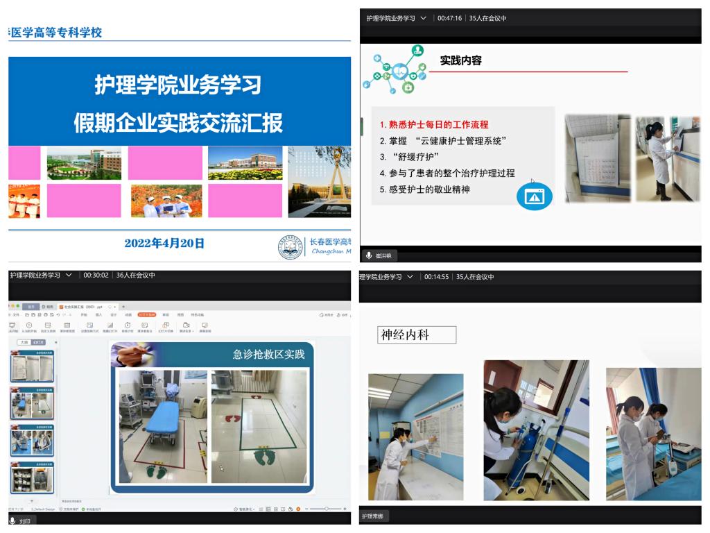 参加2022年寒假企业实践的6名教师精心准备了PPT和交流内容,分别从医院环境、规章制度、物品管理、仪器设备、护理措施和创新发展等多方面进行了汇报,分享了实践中的所见所闻,让教师们了解到医院的前沿知识,也感受到医院护理工作的严谨性及生命至上的观念。