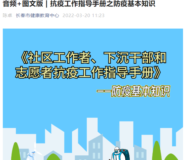 受疫情影响,学校授课形式调整为线上教学,我校临床医学院预防医学教研室的老师针对疫情设计实训教学内容,要求2020级预防医学专业的同学们结合学过的专业知识和课程内容,制作预防新型冠状病毒、普及相关知识的健康教育内容,并借助学校的政校合作平台,推选优秀作品在长春市健康教育中心微信平台上发布,引导公众科学应对新冠肺炎疫情。