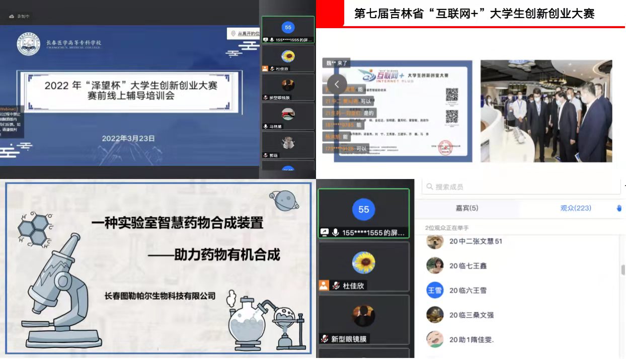 为了进一步推进我校大学生创新创业工作,完善创新创业培养体系,更好的帮助院部完成参赛创新创业项目遴选工作,使我校师生能够对创新创业项目进行准确的识别和合理的选择,3月23日晚,教务处通过“腾讯会议”网络直播的形式,组织召开了2022 年“泽望杯”大学生创新创业大赛赛前线上辅导培训会。教务处副处长马艳慧、预报名参加2022年创新创业校赛的团队和指导老师、各院部创新创业管理人员等260余人参加了本次会议,会议由教务处杜佳欣主持。