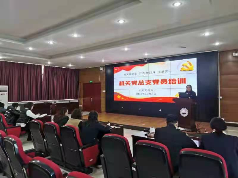 12月3日,机关党总支在善教楼2楼报告厅开展主题党日活动,党总支全体党员参会,机关党总支书记周银玲主持会议。