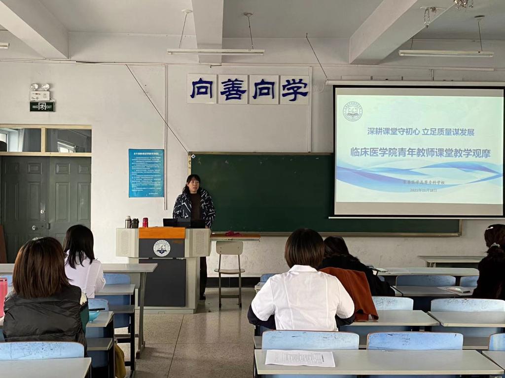 为进一步加强教师队伍建设,深化落实学校开展的“深耕课堂守初心,立足质量谋发展”青年教师课堂教学观摩活动,提高青年教师的教学能力,临床医学院于11月18日上午在善学楼1439教室开展了35岁以下青年教师课堂教学观摩活动,担任此次活动评委的有临床医学院教授委员会成员和各教研室主任,会议由杜林老师主持。