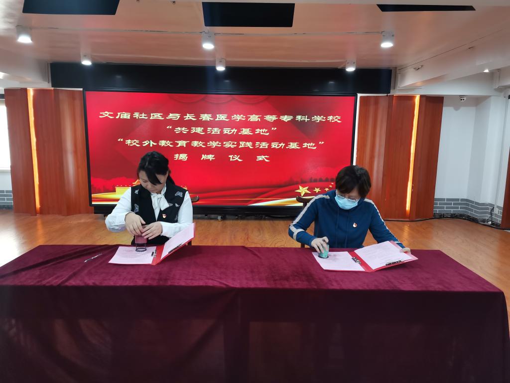 刘欣与胡静涛签订了“桃源街道‘聚源红’党建共同体共建协议书”,刘恒和赵欣共同为共建活动基地揭牌。