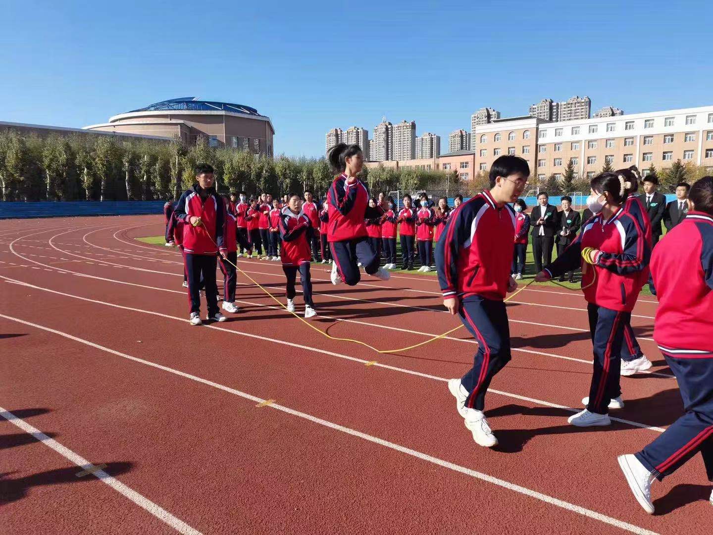 比赛中,各班按分组情况依次参加跳大绳比赛,同学们团结一致,奋勇拼搏,展现出了顽强的意志力和高尚的竞赛品质。经过激烈角逐,评出第一、二、三等奖。