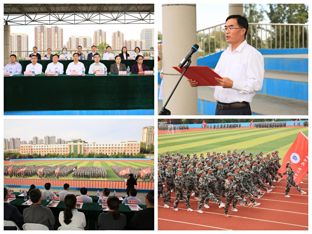 以秋阳为点缀,以迷彩为底色,2021级新生结束了历时十四天的军训生活,9月15日下午,军训闭幕式在学校体育场上隆重举行。近3000名新生组成的二十一个阅兵方队接受了学校领导和嘉宾的检阅,为新学期的第一堂必修课交上了一份满意的答卷。中国人民解放军空军航空大学战勤学院二大队大队长赵振泉、长春医学高等专科学校党委书记叶春民、校长袁兆新、副校长赵欣、副校长李银山、副校长孙莹、纪委书记赵春城、学生工作处处长张鹏飞以及各学院院长、党总支副书记、2021级辅导员出席了闭幕式。闭幕式由学生工作处副处长刘思雅主持。