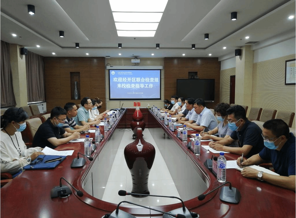 8月26日上午,经济技术开发区文教局副局长陈威带领区疾控中心和市场监管局联合检查组一行6人来我校检查秋季开学疫情防控工作。汇报会在善教楼二楼会议室召开,校长袁兆新、副校长李银山出席会议,学校各疫情防控工作组组长参会。