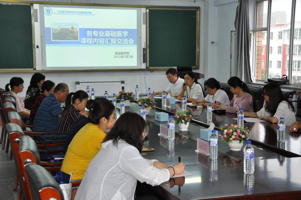 随后,基础医学部四位教研室主任分别从本教研室开设课程的设置、各专业各课程教学团队情况、课程内容调整情况、授课内容的重点详略选取等方面进行了详细的汇报。各专业带头人结合专业特点、专业岗位需求等方面对教学内容选取提出了宝贵的建议。