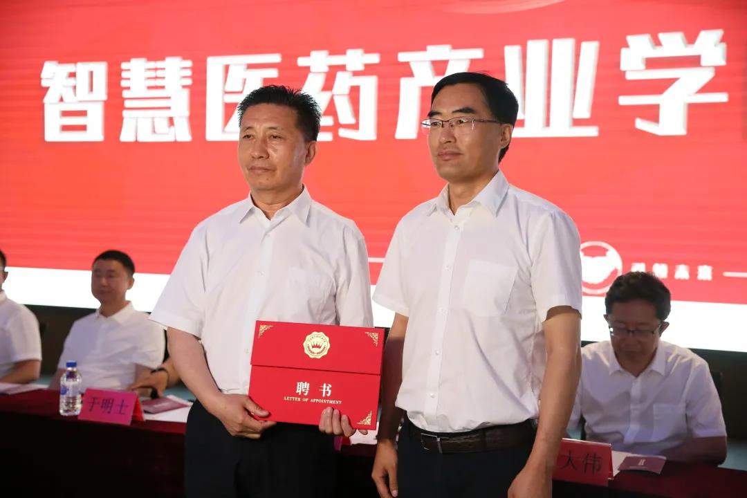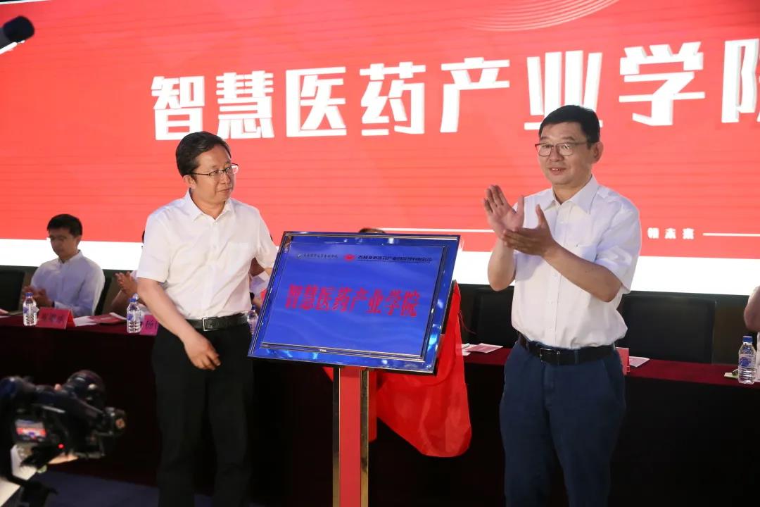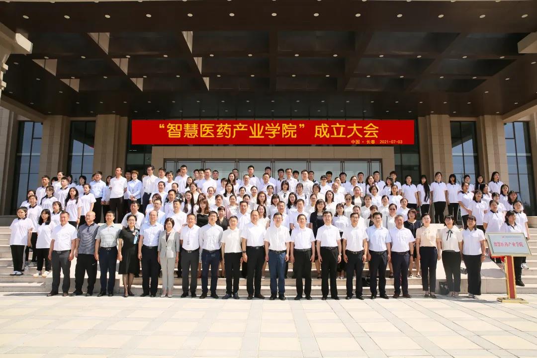 2021年7月3日上午,我校智慧医药产业学院成立大会在长春市中韩(长春)国际合作示范区北药园隆重举行。吉林省教育厅副厅长战高峰、长春市教育局副局长李大伟、吉林省教育厅职成处处长孙大文、吉林省工信厅企业处处长杨真玉等上级领导,亚泰医药集团副总裁杨啓忠、于明士、中韩北药园总经理耿佩民及其企业管理人员代表,学校党委书记叶春民、校长袁兆新、副校长孙莹及教师、学生代表,共160多人参加会议。