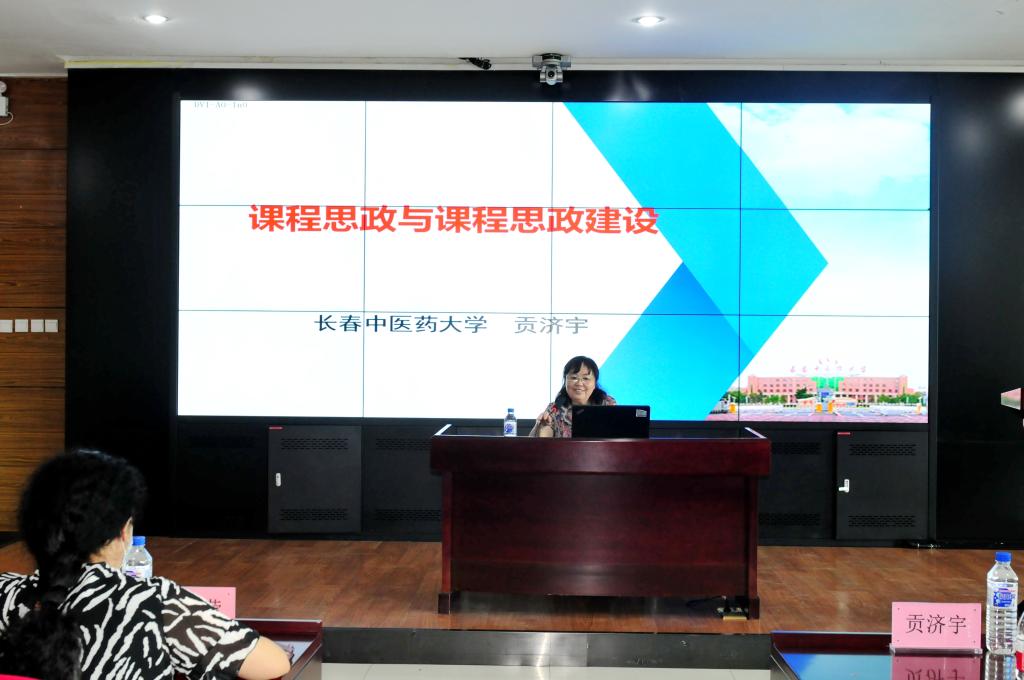 为全面落实立德树人根本任务,帮助一线教师正确理解课程思政的内涵和意义、准确把握课程思政的实施路径、深入挖掘有效融入课程思政元素的方式方法,帮助教师更好的进行课程思政教学设计与实践,切实提高课堂教学的育人水平,提高教育教学质量,6月25日,教务处在善教楼二楼报告厅组织召开课程思政建设专题培训会。会议邀请长春中医药大学2021年国家级首批课程思政示范课程负责人贡济宇教授作专题讲座,副校长孙莹及全体无课专兼职教师参加培训。会议由教务处处长张虹主持。