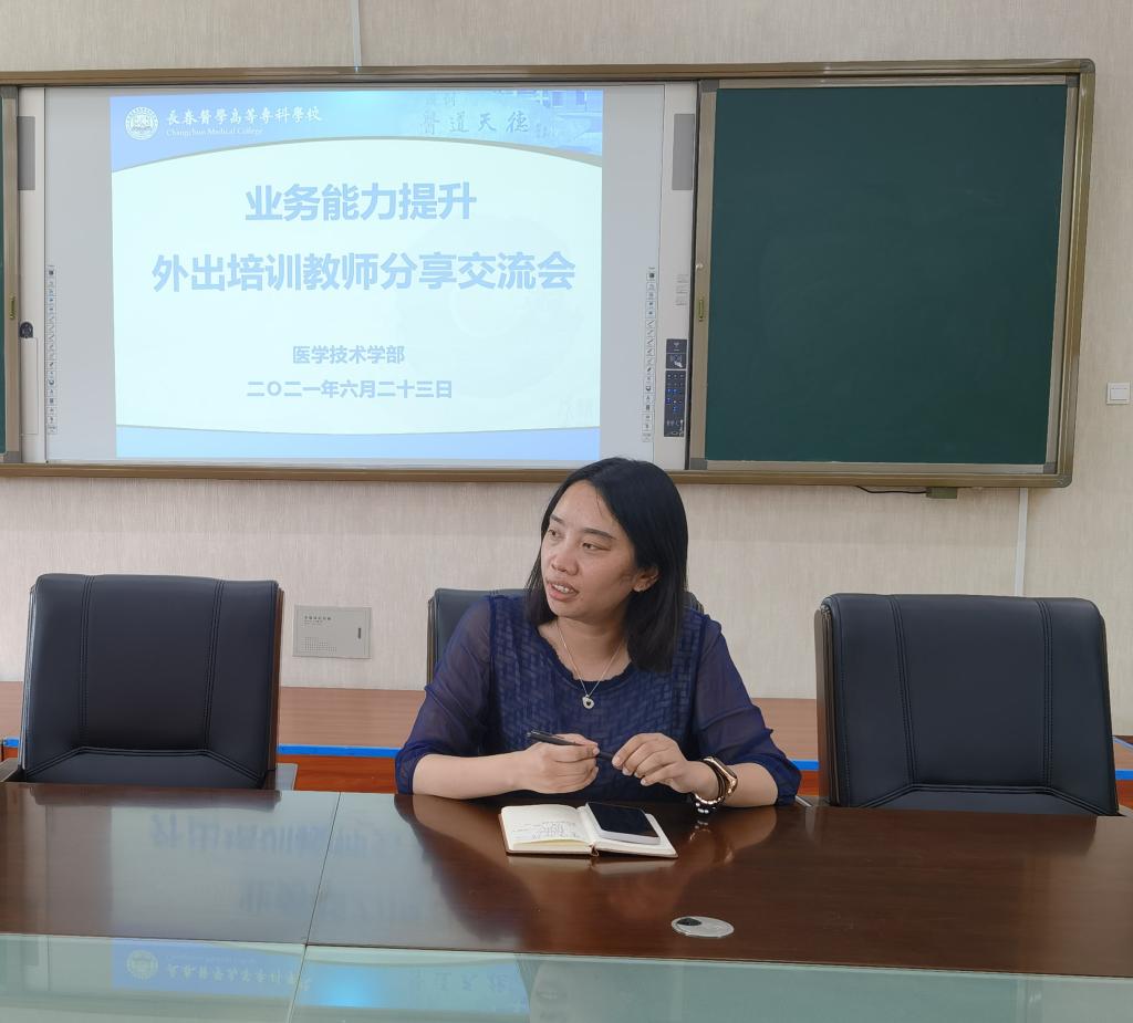 为了助推学校早日实现升本目标,增强院部教师的职业教育本科层次人才培养理念及教学成果培育能力,6月23日下午,医学技术学部在善学楼五楼会议室召开了外出培训教师分享交流会。副院长孙晓琪和全体专任教师参会,会议由孙晓琪主持。