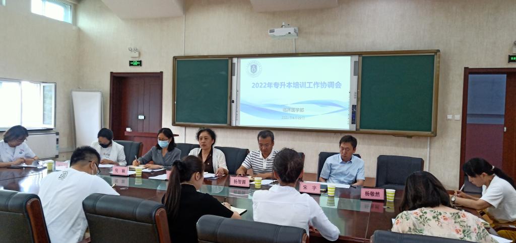为总结2021年专升本工作经验,进一步提高临床医学院专升本培训质量,促进学院未来专升本工作规范化、优质化,6月22日,临床医学院在善学楼五楼会议室召开专升本培训工作协调会。副校长孙莹、基础医学部主任宋宇、思想政治理论教研部(公共学科部)主任刘力为、计财处处长倪颖、专升本培训班任课教师以及相关辅导员参加了本次会议,会议由临床医学院院长杨智源主持。