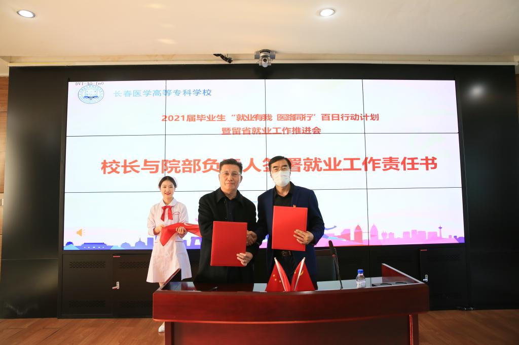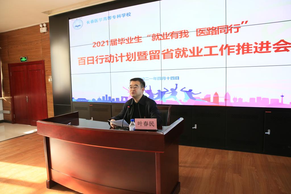 会上,招生就业处副处长高雅静宣读了《长春医学高等专科学校2021届毕业生“就业有我 医路同行”百日行动计划暨留省就业工作实施方案》。招生就业处副处长刘丹丹对2020届毕业生就业情况进行了总结与分析。2020年,在疫情影响下,全校上下齐抓共管勇担当,精准服务促就业,就业率达到93.38%,创历史新高。
