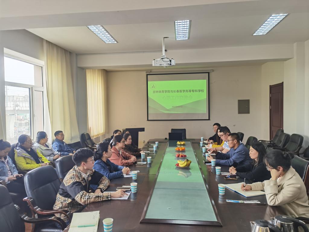 为进一步了解当代大学生常见心理问题,心理疾病特点、症状、成因及处置对策,着力提升辅导员心理健康教育工作的能力和水平,切实增强我校辅导员队伍工作的针对性和实效性,推进学院大学生心理健康交流工作的进程。4月1日下午,临床医学院党总支副书记杨敬然、大学生心理健康中心主任陈丹以及学院专兼职辅导员等一行十人到吉林体育学院进行考察交流,双方在吉林体育学院行政楼会议室进行了深入的交流学习与研讨。