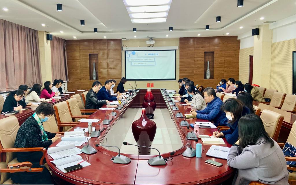 为进一步发挥课程建设“主阵地”、课堂教学“主渠道”作用,强化示范引领、资源共享,推动学校课程思政建设新局面,3月24日上午,学校课程思政教学研究中心在善教楼二楼会议室召开了省级课程思政示范项目申报评审会。校党委书记叶春民、副书记陈贵锋,纪委书记赵春城,组织部部长刘洪波,总督学王春梅,科研与发展规划处处长刘洋担任评审专家。教务处副处长张虹,各院部主任、教学副主任,课程组负责人和教务处相关人员参加了会议。会议由叶春民主持。