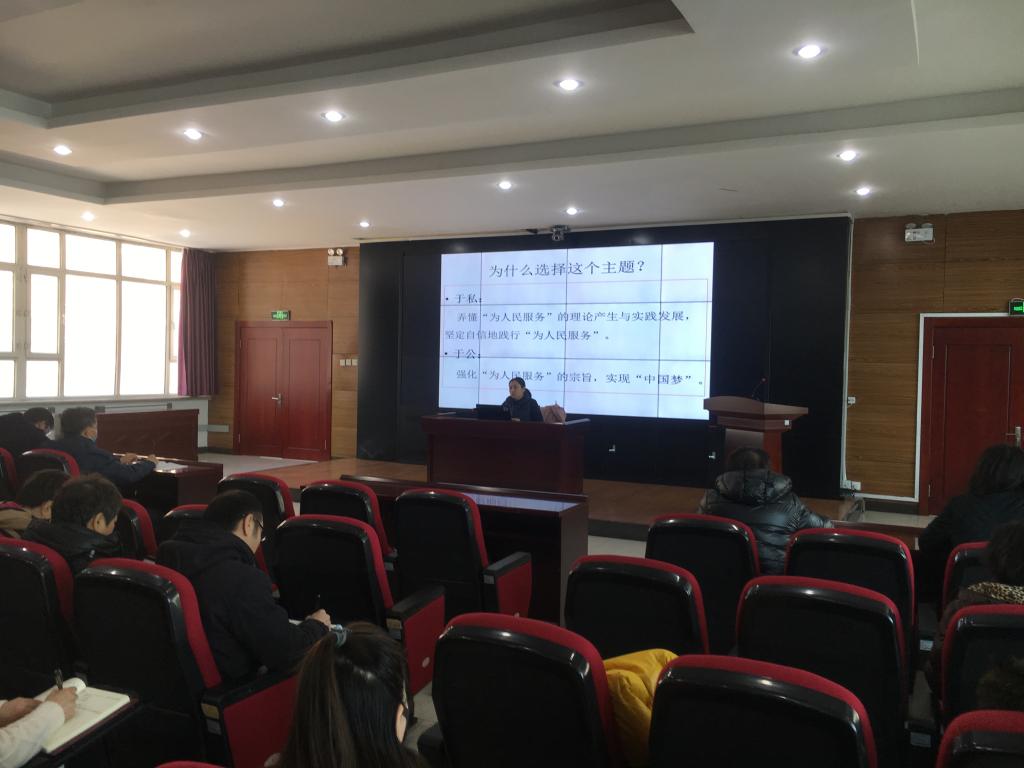 按照学校《巩固深化“不忘初心、牢记使命”主题教育成果2020年具体工作安排》的通知精神,为落实校领导深入基层讲党课,12月16日,人文社科党总支与药学党总支全体党员共同聆听了由副校长赵欣讲授的题为《为人民服务》专题党课。