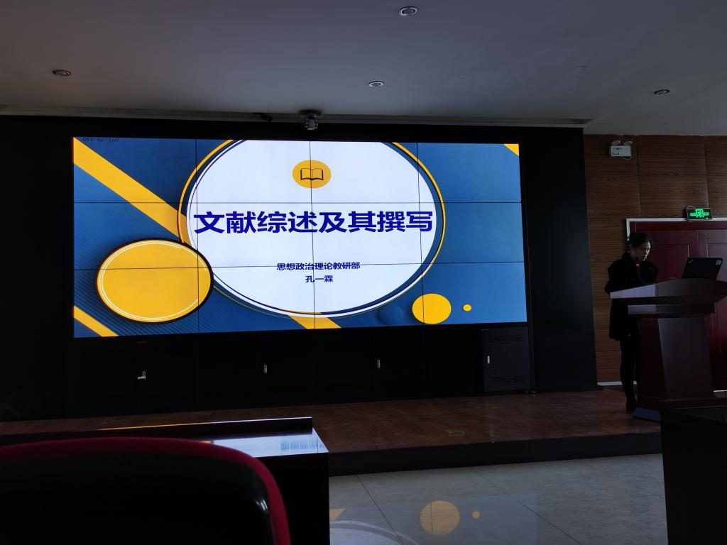 为切实推进“以教学为中心、以科研为导向,全面加强教师队伍建设”的工作要求,提高教师科研撰写能力,人文社科部、思政教研部全体专职教师及部分兼职教师于12月2日在善教楼二楼报告厅举行“文献综述撰写培训会”。培训会由思政部教师孔一霖主讲,胡静涛主持。