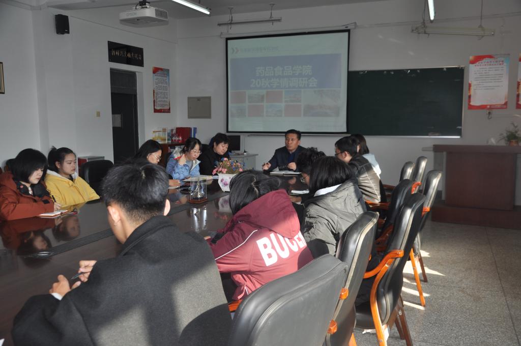 为提高教学质量,促进学院更好发展,创建更加美好校园生活和学习环境,药品食品学院于11月2日在药学楼六楼会议室召开本学期期中教学反馈会。药品食品学院院长于景龙、药学党总支副书记高雅静、副书记马艳慧、副院长王月珍、院办学办相关教师及在校班学生代表参加此次活动,会议由于景龙主持。