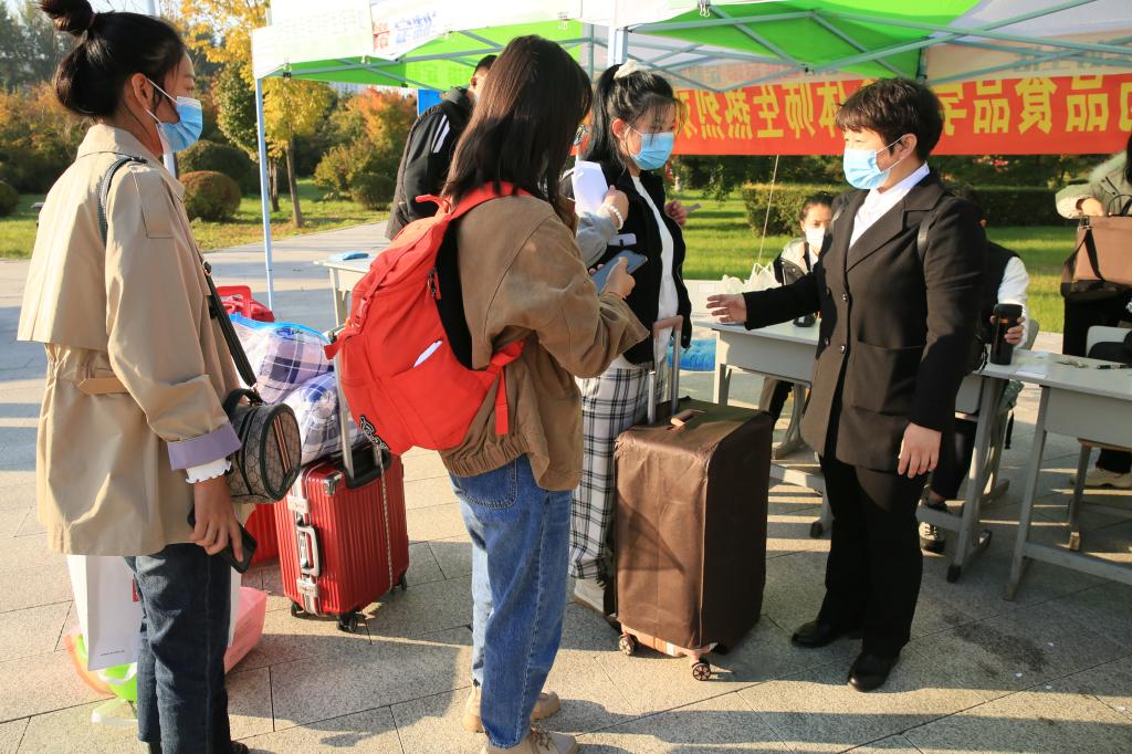秋日的校园色彩斑斓,横幅和彩球在校园里迎风飘扬。道路两旁醒目的指示牌、校门口和荟萃广场整齐摆放的迎新帐篷让校园又焕发出了蓬勃生机。学校各部门、各院部老师和志愿者们早早就位,迎接医专的“小萌新”们。确认身份、测温、清毒、换发口罩,查验健康码、通信行程卡,办理入住手续、进入宿舍……各项工作一气呵成、井然有序。