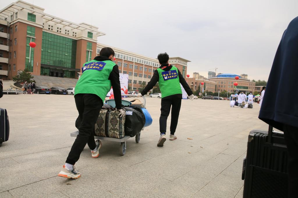 在车站和地铁口,医专的学生志愿者们手持指示牌为新生做指引,“同学你好,请往这边走!”在校门口,“我来帮你搬行李!”迎新志愿者们不计辛劳,一趟趟帮助新生把行李送到寝室,引导他们办理入学手续。药品食品学院19级郭昌霖说,“从过去做为新生被人帮助,到现在来帮助别人……这对我来说是一种改变也是进步。”“今年不能进入学校是我们最大的遗憾,但看到学校老师和同学们这么周到的服务,我们感到很放心!”临床医学院新生小李同学的家长这样说。