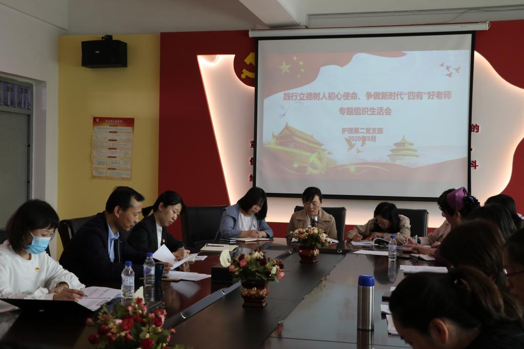 9月30日上午,校党委副书记陈贵锋走进党支部联系点—护理党总支第二党支部,调研党支部“双创强基”行动落实情况并指导“践行立德树人初心使命、争做新时代‘四有’好老师”专题组织生活会。第二党支部全体党员参会,会议由党支部书记曹玉凤主持,护理党总支书记高寒、副书记赵丽波、组织部郝宇列席会议。