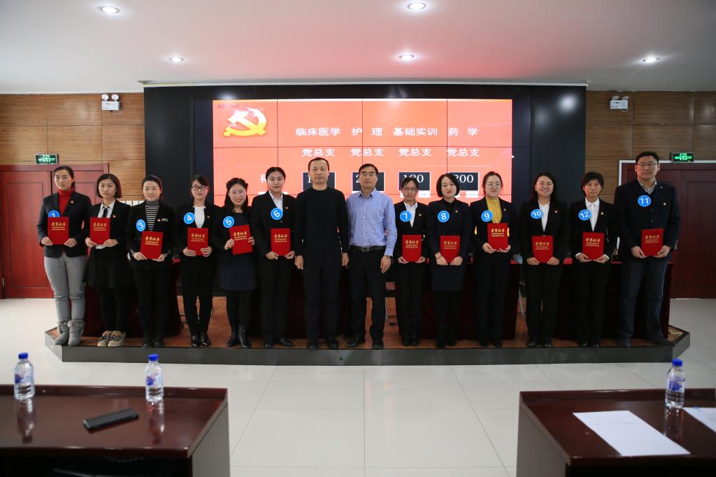 本次知识竞赛分为三个阶段。第一阶段为理论学习阶段,全体党员同志自主学习《中国共产党十九大报告》、《中国共产党章程》、《中国共产党纪律处分条例》、《中国共产党廉洁自律准则》。第二阶段为初赛阶段,以蓝墨云班课APP平台为依托,每位党员加入“学习党内法规、严明党的纪律”班课进行本次知识竞赛的初赛,利用11月20日和11月27日的午休时间,全校七个党总支的全体党员经过两次比赛,成绩排在前四名的党总支进入决赛。第三阶段为决赛阶段,决赛采取现场答题的形式,于12月11日下午在善教楼报告厅进行。学校党委副书记、纪委书记陈贵锋同志,学校副校长袁兆新同志新临决赛现场。机关党总支书记刘洋,后勤党总支纪检委员吕宝勤进行现场的指导和监督。决赛设为必答题、抢答题、风险题三种题型,队员们凭借丰富的知识、快速的临场反应,赢得了现场观众的热烈掌声和赞誉,充分展示了我校党员干部的良好精神风貌。最后护理党总支获得集体一等奖、药学党总支获得集体二等奖、基础实训党总支和临床医学党总支获得集体三等奖,大赛还评选出了个人一、二、三等奖。