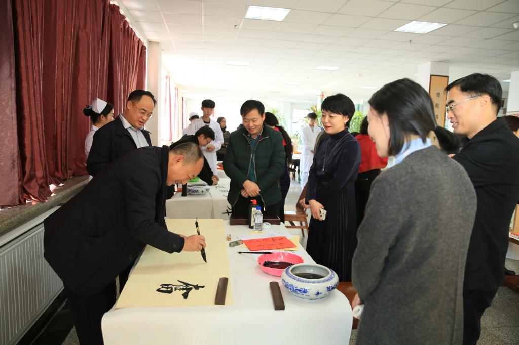 为深化“不忘初心牢记使命”主题教育,巩固主题教育成果,推进新时代美育教育深入开展,进一步弘扬中国传统文化,12月10日,长春市文联党组成员副主席孙德伟、中国美术家协会会员赵经武、吉林省书画院专业画家李廷先、中国书法家协会会员汪鹏辉、长春美协会员丁保山、长春美协会员田小平一行9名省市文学艺术界书画名家走进我校,隆重举办“翰墨医专、美育新人” 书画笔会。我校全体党委委员、书画爱好者以及部分师生代表参加笔会。
