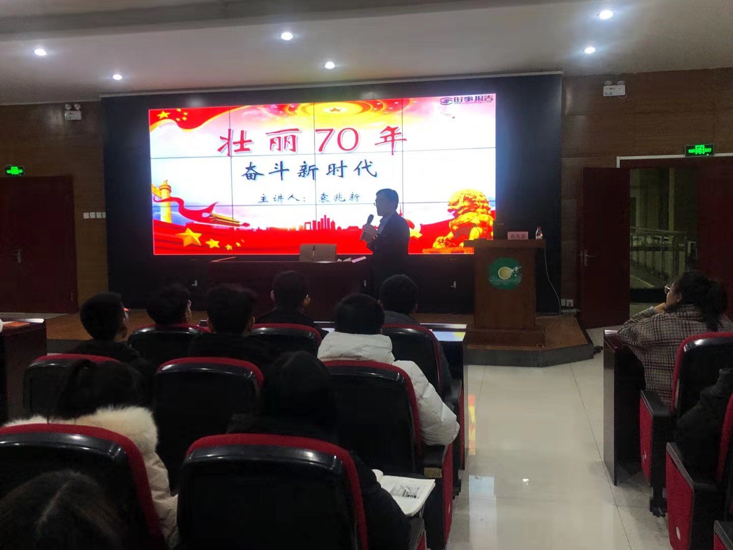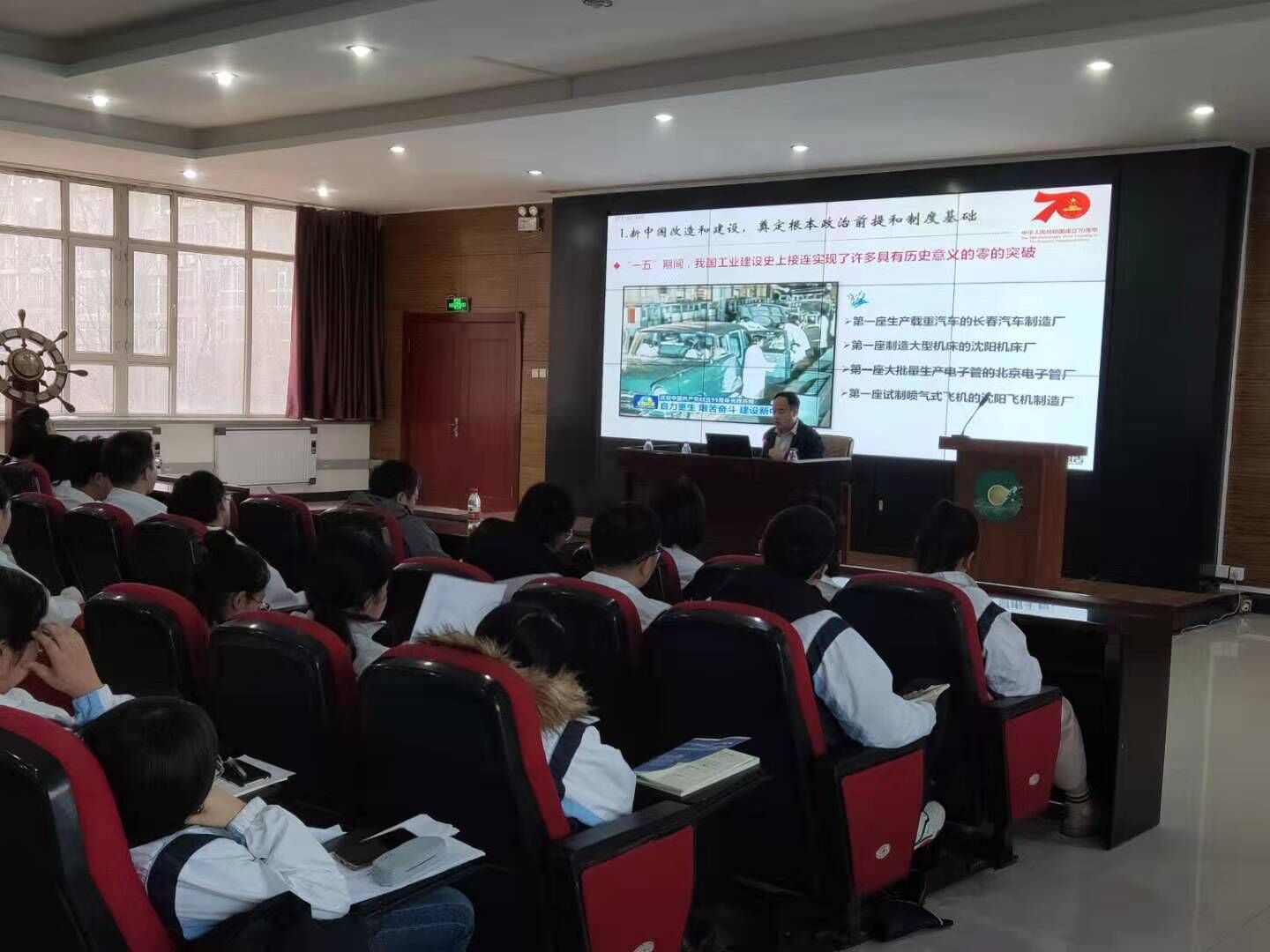 三位校领导从“艰辛探索铸就辉煌历程”“砥砺奋进谱写壮丽史诗”“深刻启示引领前行之路”三个方面,以宏观的视野、清晰的历史脉络和切合学生思想的角度,通过讲述艰辛辉煌的中国故事、壮丽奋进的中国共产党故事、举旗引航的中国特色社会主义故事,充分阐释了新中国70年的光辉历程、伟大成就和宝贵启示。授课中,校领导们结合吉林省的发展历史、结合学校发展历程,结合个人的人生经历,讲述了70年前满目疮痍的国家,如何以崭新的姿态屹立于世界的东方,一个浴火重生的国家又走过了怎样的壮丽征程,如何创造出了人间奇迹的这一问题,以清晰的授课思路、详实贴切的案例、幽默平和的语言风格,深深的吸引了学生。学生们与校领导积极互动,不时传出阵阵会心的笑声。
