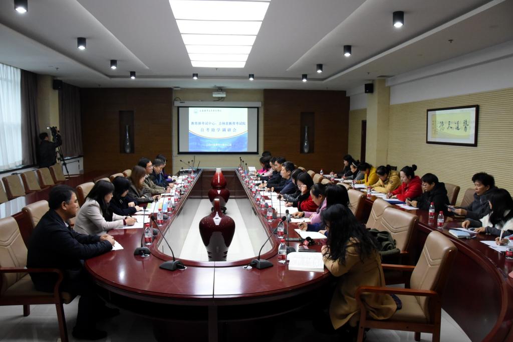 11月12日下午,教育部考试中心处长王建民、吉林省教育考试院副院长熊越、自考部副部长白文红等一行八人莅临我校对自考助学工作开展调研。校长薛春志、成教部主任马爱民及部分自考任课教师、成教部全体工作人员参加了会议,会议在善教楼二楼会议室召开,由副校长袁兆新主持。