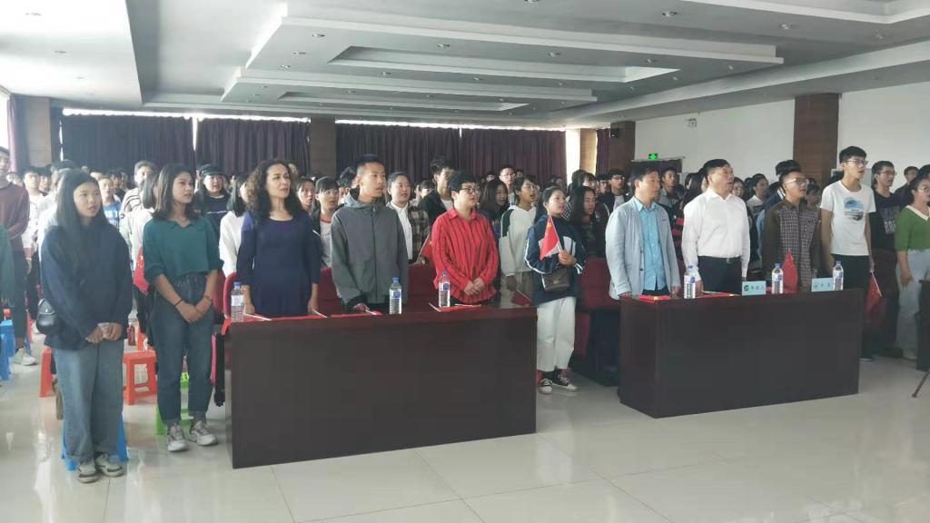 十月一日上午,学校组织国庆没有回家的学生观看新中国成立七十周年大阅兵直播。副校长李银山、学校办公室主任王迪新、保卫处处长张鹏飞、后勤党总支书记赵环宇、临床医学党总支副书记李淑艳、团委副书记雷明,学务处、保卫处、临床医学院相关老师和近八百名同学一同观看。观看阅兵活动由学生事务科黄岚科长主持。