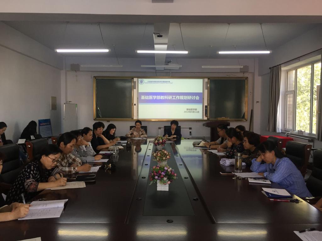 9月11日下午,基础医学部在基础楼401会议室召开教科研工作规划研讨会。基础医学部全体人员参加会议,基础医学部主任王春梅主持会议。
