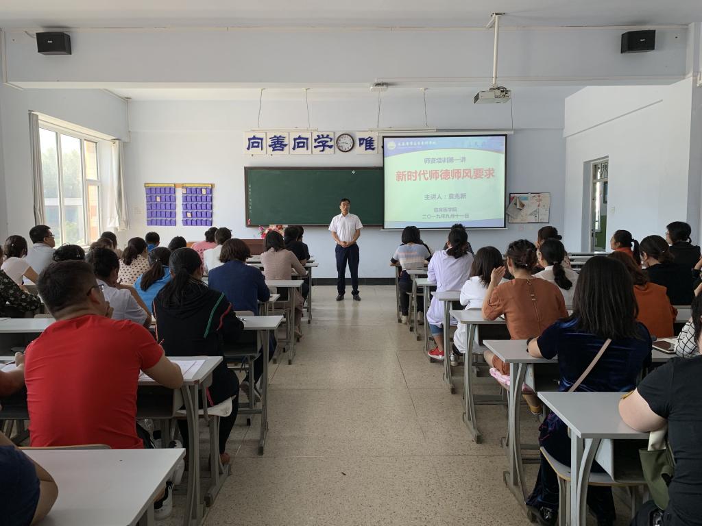 9月11日中午,临床医学院在善学楼1219教室举办了师资培训第一讲。副校长袁兆新出席并做题为《新时代师德师风要求》专题培训。会议由临床医学院院长赵冰主持,临床医学院全体教职工参会。