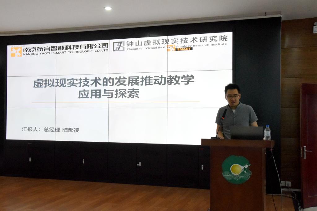 陆郝凌以“虚拟现实技术的发展推动教学应用与探索”为题,以2015年与我校联合研发全国首套临床药学产品《静脉用药集中调配中心实训仿真系统》为例,依托虚拟现实、多媒体、人机交互、数据库和网络通讯等技术,构建高度仿真的虚拟实验环境和实验对象,实现真实实验不具备或难以完成的教学功能,学生在虚拟环境中开展实验,达到所要求的认知与实践教学效果。