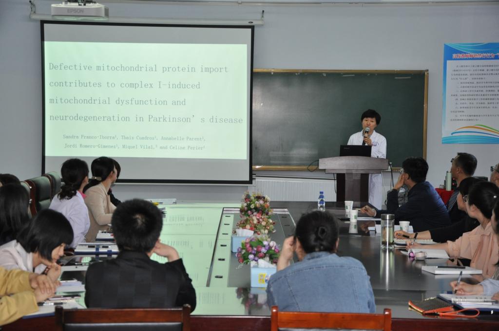 本次学术沙龙的主讲人为生理教研室的高玲博士,她分享的论文是选自nature杂志2018年第9期的一篇论文《Defective mitochondrial protein import contributes to implex-1 induced mitochondrial dysfunction and neurodegenertion in parkinson’s disease》。该论文通过研究线粒体转位酶Tom20和Tim23在帕金森病患者脑组织标本、帕金森病细胞模型和动物模型中的蛋白表达水平,阐述了线粒体蛋白导入缺陷与帕金森病之间的关系。在讨论环节中,王忠超博士及贺伟老师等分别就论文涉及的一些学术问题与高玲博士进行了提问和讨论,并提出了一些设想和看法。袁兆新也就论文重点研究内容和高玲进行了讨论,他强调这次沙龙选题很好,论文选自nature2018年,涉及最新的研究进展,研究内容具有创新性也有很大的争议性。他再次强调了基础研究的重要性,希望通过学术沙龙能够使大家对医学领域的新进展有认知,并以此提高专业教学水平。