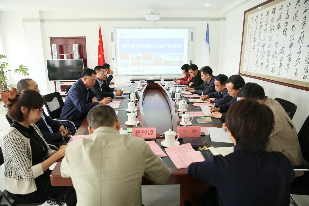 5月10日上午,我校在善教楼十楼会议室召开医养康教项目校企合作洽谈会。会议特邀长春市见义勇为办公室主任钟臣、北京永好家文化发展有限公司董事长杨雨丰、北京同善堂中医院投资有限公司总裁王森、北京永好家文化发展有限公司副总经理兼吉林省仲景堂大药房有限公司总经理陈林、香港华领体检中心总经理刘帅等嘉宾。我校党委书记姜元生、校长薛春志、副校长袁兆新及相关部门负责人参加会议,党委副书记陈贵锋主持会议。