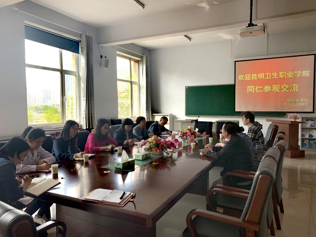 5月8日,昆明卫生职业学院检验学院院长张群智一行3人来到我校,就预防医学专业建设开展交流调研活动。副校长袁兆新、临床医学院院长赵冰、副院长张虹、卫生行指委预防医学主任委员李新教授以及预防医学专业教师参加了座谈交流。会议由张虹主持。