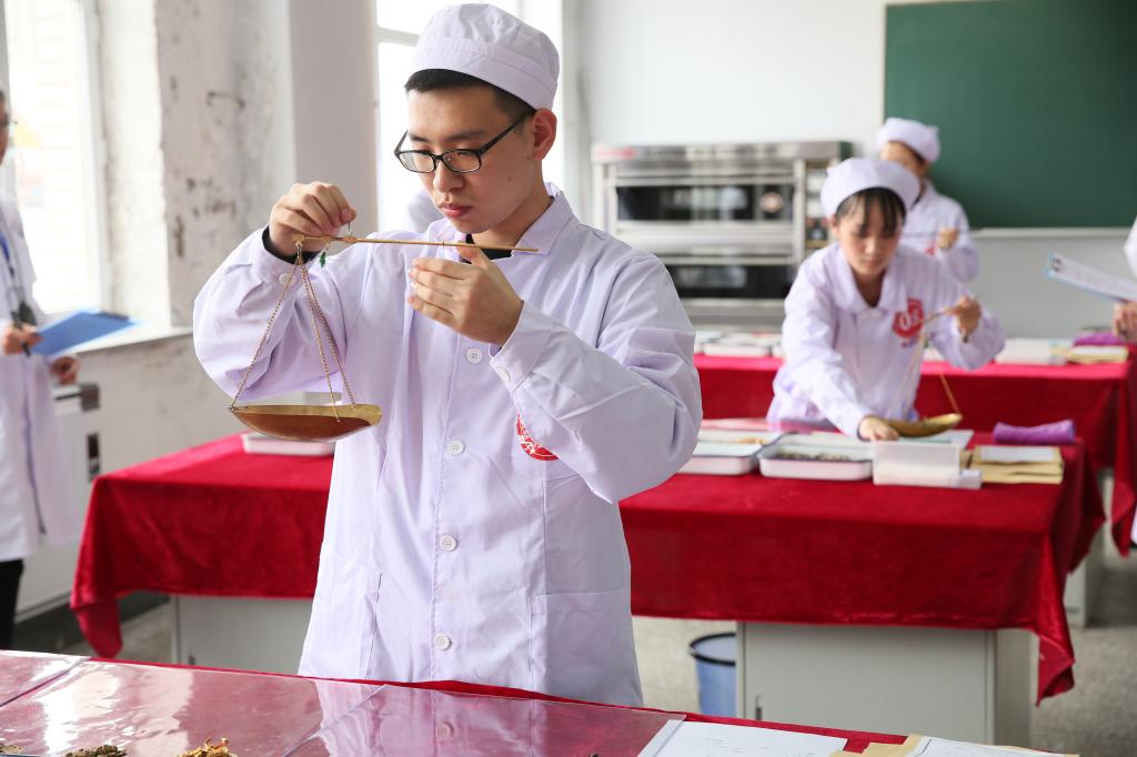 据赛项技术负责人介绍,选手需要牢固掌握350味常用中药性状与功效和80味中药真伪鉴别,能够熟练精准进行中药调剂,掌握销售药店药品贮藏与摆放规则,对常用药品功能主治、用药禁忌了如指掌并能够灵活应对不同患者进行安全用药咨询。